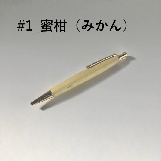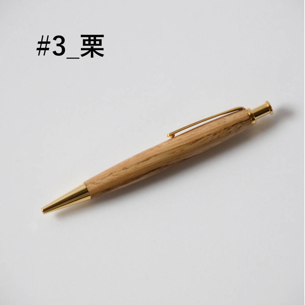 役目を終えた周防大島の木(蜜柑材・桜材・栗材)をノック式のボールペンに仕立てました。