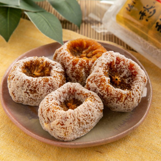 ※表面に部分的に白い斑点が発生している場合が御座いますが柿内部の糖分が表面に出て固まったものですので問題はありません。
