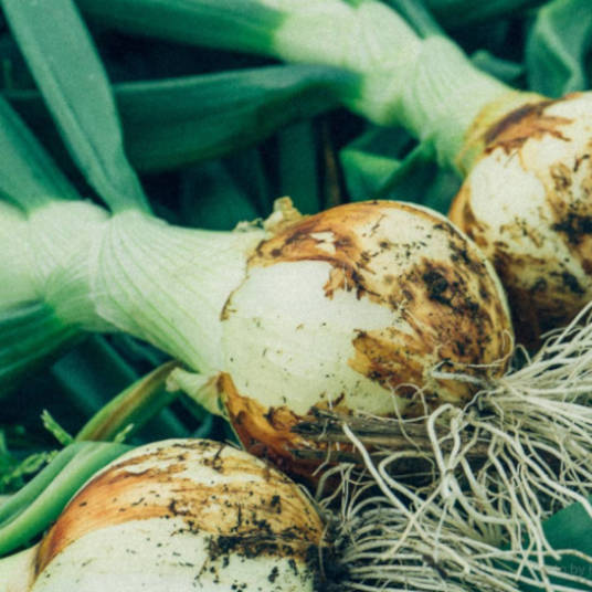 私たちが土づくりにこだわり、栽培期間中無農薬・無化学肥料栽培でお届けする葉付きのサラダ玉ねぎ。