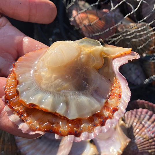 栄養豊富な対馬の海で養殖しているヒオウギ貝(色鮮やかな貝)を山桜チップの煙でじっくり時間をかけて温燻にしました。味付けは、素材を活かすシンプルな対馬暖流を汲みあげた天日塩。山桜や炭の材料までも全て対馬産で、対馬に自生する山桜を切り、チップにするところから全工程を生産者が全て手作業で行なっています。