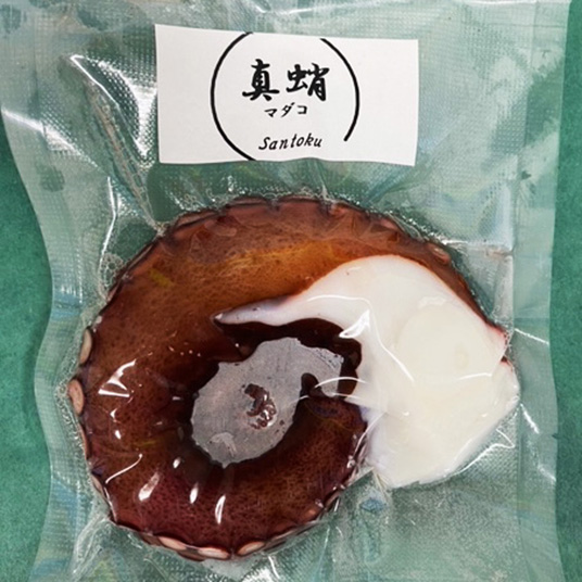 10月から始まったタコ漁でとりました。足のみ200g弱です。一つ一つ手作業で煮あげています。お刺身はもちろん、おでんがおすすめです。