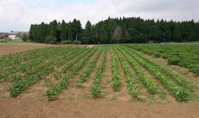 「豆を播くときは三粒ずつ播け。一つは空を飛ぶ鳥のため、一つは土の中の虫のため、そしてもう一つを我々人のために」この詩が三つ豆ファームの名前の由来です。生き物のこと、次世代のことを考えた持続可能な農業をしたいとの思いを込めています。農園の場所は千葉県山武市。黒ボク土と呼ばれるフカフカの黒土が広がる台地です。近所でとれる米ぬかなどを発酵させた自家製肥料を使って、「たくさんの生き物の中でおいしい野菜は作られる」という考えのもと土中の豊かな微生物層を土台とした農薬にたよらない栽培をしています。