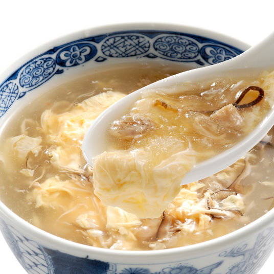 【素材】【ふかひれスープ(広東風)】広東風スープたれ(たんぱく加水分解物、食塩、しょうゆ、その他)(国内製造)、野菜(たけのこ、しいたけ)、鶏肉、ふかひれ、ごま油/増粘剤(加工でん粉、キサンタン)、調味料(アミノ酸等)、アルコール、香辛料、(一部に小麦・ごま・大豆・鶏肉・豚肉を含む)
