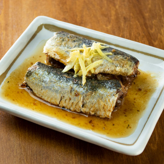 【いわしの生姜煮】いわし(国産)、しょうゆ、砂糖、還元水あめ、煮魚たれ(砂糖、しょうゆ、果糖ぶどう糖液糖、生姜、その他)、、酒精、みりん、しょうがペースト、黒糖蜜、昆布エキス、食塩、漁醤/増粘剤(加工でん粉)、調味料(アミノ酸等)、(一部に小麦・大豆を含む)