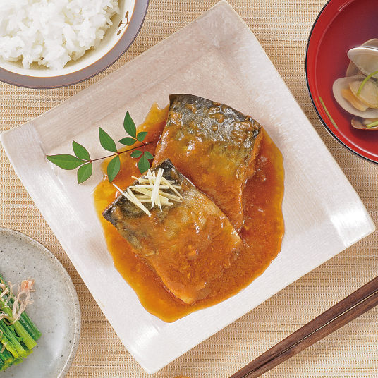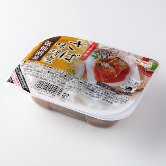 国産さばを骨まで柔らかく、ふっくらとした味噌煮にしました。 生姜の風味がアクセントになっている飽きのこない味わいです。容器はレンジ加熱対応トレーを使用。約30秒(500W)温めることでより美味しくお召し上がりいただけます。常温保存できるため、常備食としても便利です。