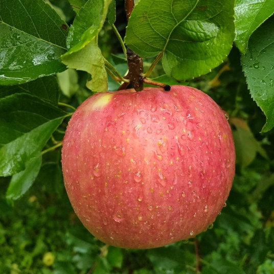 酷暑の影響により、葉を摘む作業をしておりません。理由は日に当たりすぎてしまい、日焼けによる害を防ぐためです。そのため、葉で隠れている部分は赤い色が薄くなっております。360度全てが真っ赤なりんごではございませんが、味に問題はなく、生食やジュース用に最適です!