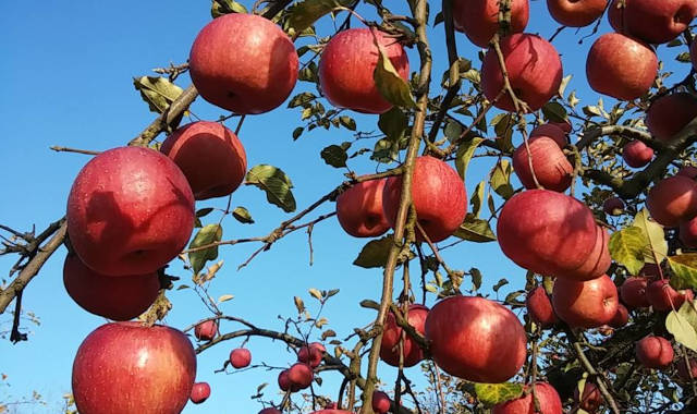 酷暑の影響により、葉を摘む作業をしておりません。理由は日に当たりすぎてしまい、日焼けによる害を防ぐためです。そのため、葉で隠れている部分は赤い色が薄くなっております。360度全てが真っ赤なりんごではございませんが、味に問題はなく、生食やジュース用に最適です!
