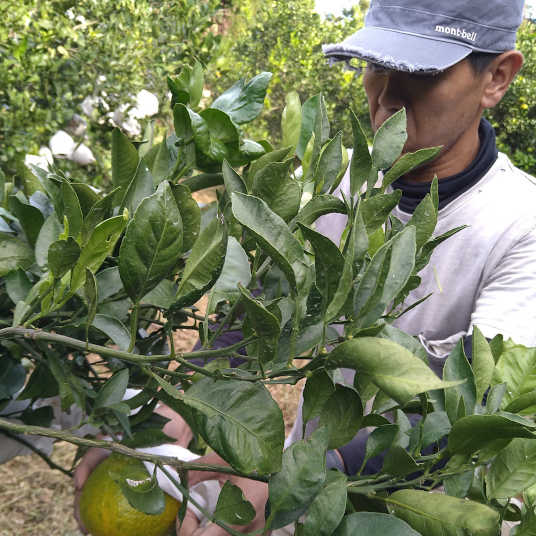 私たちが丹精込めて育てる柑橘は減農薬栽培と除草剤を使用せず有機質肥料と堆肥を施用し土づくりを意識して生産しています。豊な芳香を持ち糖度が高く、程よい酸味で濃厚かつジューシーな果実です。果皮は少し厚いですが、剥きやすく、じょうのう膜(房の袋)が薄く種もほどんどないのが特徴です。その中でもM~2Lサイズを混合しています。