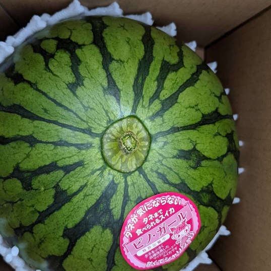一般的なスイカの種と比べて1/4と小さく、食べた時に種の存在が ほとんど気になりません。小さいお子さまにも安心です。小玉スイカなので一人でペロリと食べれちゃうかも?! 果肉は硬めで皮の際まで甘い 極上のシャリシャリ食感をご堪能ください。
