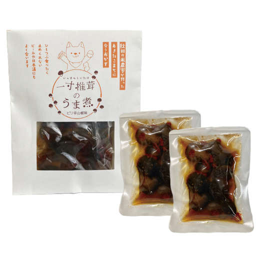 ひとくちサイズの椎茸のコリコリとした食感を残しながら、地元秋田の石孫本店の醤油と両関酒造の日本酒を使って甘辛く炊き上げました。煮汁には水を使わず、素材のうまみがたっぷり含まれていますので炊き込みご飯などにもお使いいただけます。地元の方にはなつかしさを、県外の方には「秋田の味」を楽しんでいただける味付けに仕上げました。