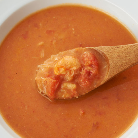 【素材】・「ビスク」クラッシュトマト(イタリア製造)、オオエンコウガニ(まるずわいがに(ナミビア産))、加工乳(乳成分を含む)、にんじん、ソテードオニオン(大豆を含む)、生クリーム、セロリ、バター、小麦粉、白ワイン、トマトペースト、オリーブオイル、甘えび粉末、はちみつ、食塩、ブイヨン(ゼラチンを含む)、乾燥にんにく