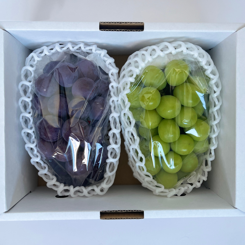 ピオーネは奥深い甘みがあり大粒で食べ応え抜群、シャインマスカットは種なしで皮ごと食べられるので大人気です。