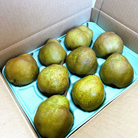 食べごろの見極めは、ラ・フランス特有の香りがしてきて軸まわりが柔らかくなります。固めが好みの方も増えてきましたのでラ・フランスを少しカットして味見をするのも良いと思います。徐々に追熟しますので折々のタイミングで食感をお楽しみください。また、他の西洋梨と違って皮の色は変わりませんのでご注意ください。甘くとろける秋の味覚をどうぞご堪能ください。
