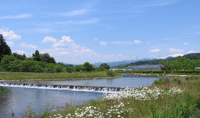 日本一さくらんぼの里”さがえ”は流麗な山々に囲まれており、澄んだ空気がとてもおいしく、のどかなところです。出羽三山の主峰である月山から流れる雪解け水が清流寒河江川のおいしい水になります。私たちは、山々に守られながら自然の恵みの力を借りて、甘くておいしい果物を作っています。