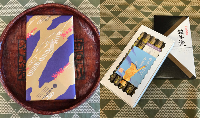 その中でも最も人気があり、親しまれている商品が「筏羊羹(いかだようかん)」です。通常羊羹といえば、拍子木状や筒状の形が一般的ですが、この「筏羊羹」は直径約2㎝、長さは17.5cmと細長い形状です。この形状になったのは昭和30年代前半頃。昔、四万十川で木材運搬に用いられていた筏をモチーフに考案されました。それ以降、現在まで形状や製法を変えずに、地元高知県をはじめ全国の皆さまに喜ばれる商品となっています。