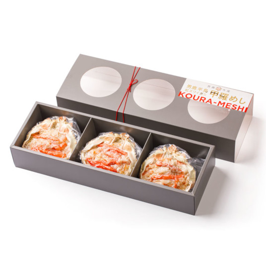 【素材】白米(秋田県産)、ボイルベニズワイガニ(秋田県産)、本みりん、りんご発酵調味料、こんぶだし、かつおだし、白だし、食塩/酒精、調味料(アミノ酸等)、(一部にかに・小麦・大豆・さば・りんごを含む)