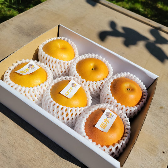 めぐみ農園では、8月下旬ごろから「幸水」の収穫が始まり、「豊水」「あきづき」「秋泉」「南水」と順番に収穫し、10月下旬ごろに全ての品種の収穫が終了します。秋田県では、お盆を過ぎると昼夜の寒暖差が大きくなります。それによって甘さが増し、果肉も引き締まります。シャキシャキ感とたっぷりの果汁をお楽しみください。「完熟した美味しい梨を食べてもらいたい」という考えのもと、樹の上で完熟させた朝採れ梨を収穫後、即日発送しています。