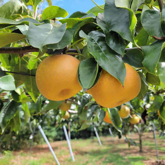 秋田県男鹿市で梨を中心にブルーベリーやブドウなどを育てています。当園は男鹿半島の付け根付近に位置しており、まわりを日本最大の潟湖である「八郎湖」や男鹿半島を一望できる「寒風山」などの大自然に囲まれています。また、「なまはげ行事」が行われる地区です。なまはげは、無病息災・田畑の実り・山の幸・海の幸をもたらす、都市の節目にやってくる来訪神です。なまはげの里で育んだ梨、「なまはげからの贈り物」を是非皆さんに召し上がっていただきたいと思っております。
