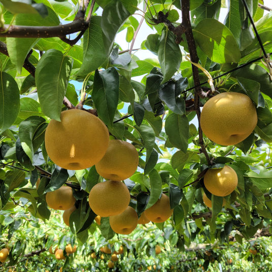 秋田県男鹿市で梨を中心にブルーベリーやブドウなどを育てています。当園は男鹿半島の付け根付近に位置しており、まわりを日本最大の潟湖である「八郎湖」や男鹿半島を一望できる「寒風山」などの大自然に囲まれています。また、「なまはげ行事」が行われる地区です。なまはげは、無病息災・田畑の実り・山の幸・海の幸をもたらす、都市の節目にやってくる来訪神です。なまはげの里で育んだ梨、「なまはげからの贈り物」を是非皆さんに召し上がっていただきたいと思っております。