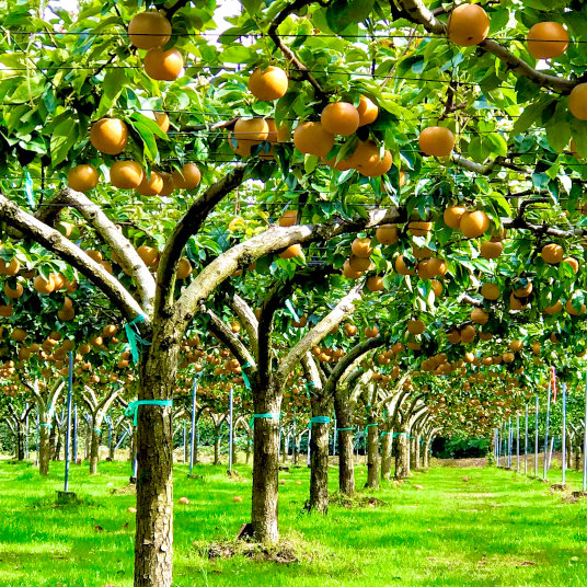 秋田県男鹿市で梨を中心にブルーベリーやブドウなどを育てています。当園は男鹿半島の付け根付近に位置しており、まわりを日本最大の潟湖である「八郎湖」や男鹿半島を一望できる「寒風山」などの大自然に囲まれています。また、「なまはげ行事」が行われる地区です。なまはげは、無病息災・田畑の実り・山の幸・海の幸をもたらす、都市の節目にやってくる来訪神です。なまはげの里で育んだ梨、「なまはげからの贈り物」を是非皆さんに召し上がっていただきたいと思っております。