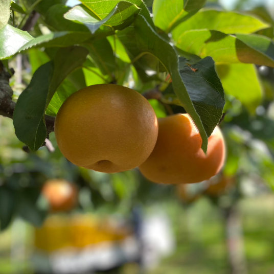 秋田県男鹿市で梨を中心にブルーベリーやブドウなどを育てています。当園は男鹿半島の付け根付近に位置しており、まわりを日本最大の潟湖である「八郎湖」や男鹿半島を一望できる「寒風山」などの大自然に囲まれています。また、「なまはげ行事」が行われる地区です。なまはげは、無病息災・田畑の実り・山の幸・海の幸をもたらす、都市の節目にやってくる来訪神です。なまはげの里で育んだ梨、「なまはげからの贈り物」を是非皆さんに召し上がっていただきたいと思っております。