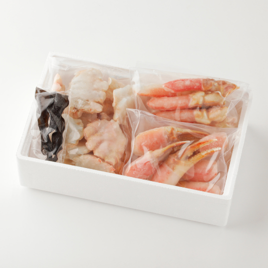 ズワイガニの肩肉やカニ爪がはいったセットです。ポーションが入っていないのですが、その分肩肉やカニ爪をたっぷり入っています。