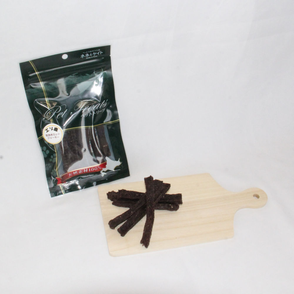捕獲後に適正な処理をしたヒューマングレードの上質な鹿肉を使用して製造しております。高たんぱく低カロリー、鉄分豊富なエゾシカ肉。原料にもこだわり一つ一つ丁寧に手作りし自信を持ってお客様へお届けいたします。低温でじっくり乾燥しており、簡単に手で割ることができます。添加物は一切使用していない100%無添加ジャーキーです。