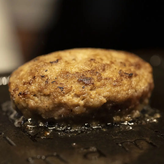 大間牛ハンバーグ、冷蔵庫内で自然解凍し揚げるだけでお召し上がり頂けます♪