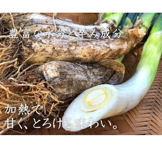 福島県須賀川市の伝統野菜!曲がりネギは、そのユニークな形状とともに風味豊かな味わいが魅力の野菜です。毎日の料理に華やかさを添えてくれる曲がりネギは、さまざまな料理に合う万能選手です。そのまま生でサラダに加えたり、炒め物や煮物に使ったりと、バリエーション豊富に楽しめます。