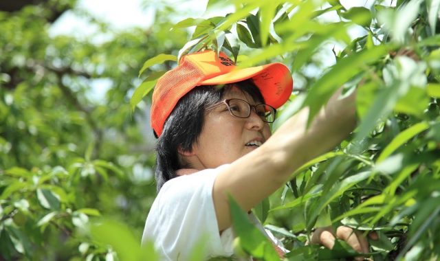 ◆納豆菌と純米酢を梨に散布し、「樹上完熟」にこだわった栽培法