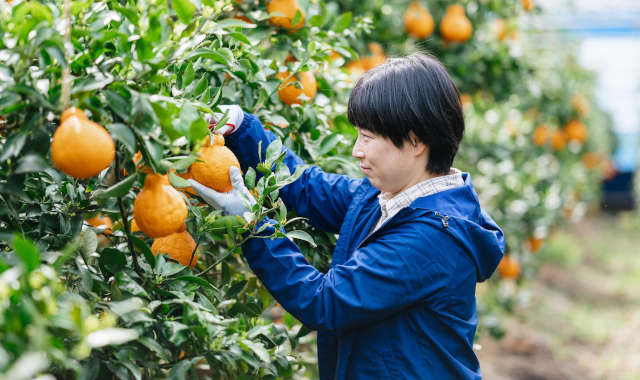 山の傾斜地を活かした段々畑は、水はけが良く、日当たりにも恵まれているので、色鮮やかで美味しいみかんを育てるのにぴったりです。こうした自然の力を活かしながら、みかん本来の甘みと酸味を引き出せるよう、工夫をこらして栽培しています。