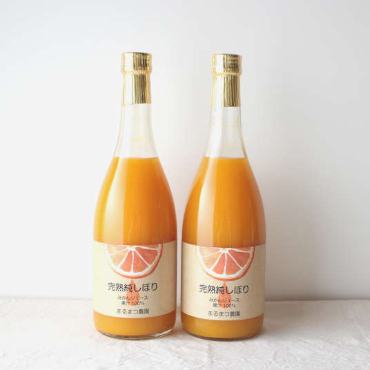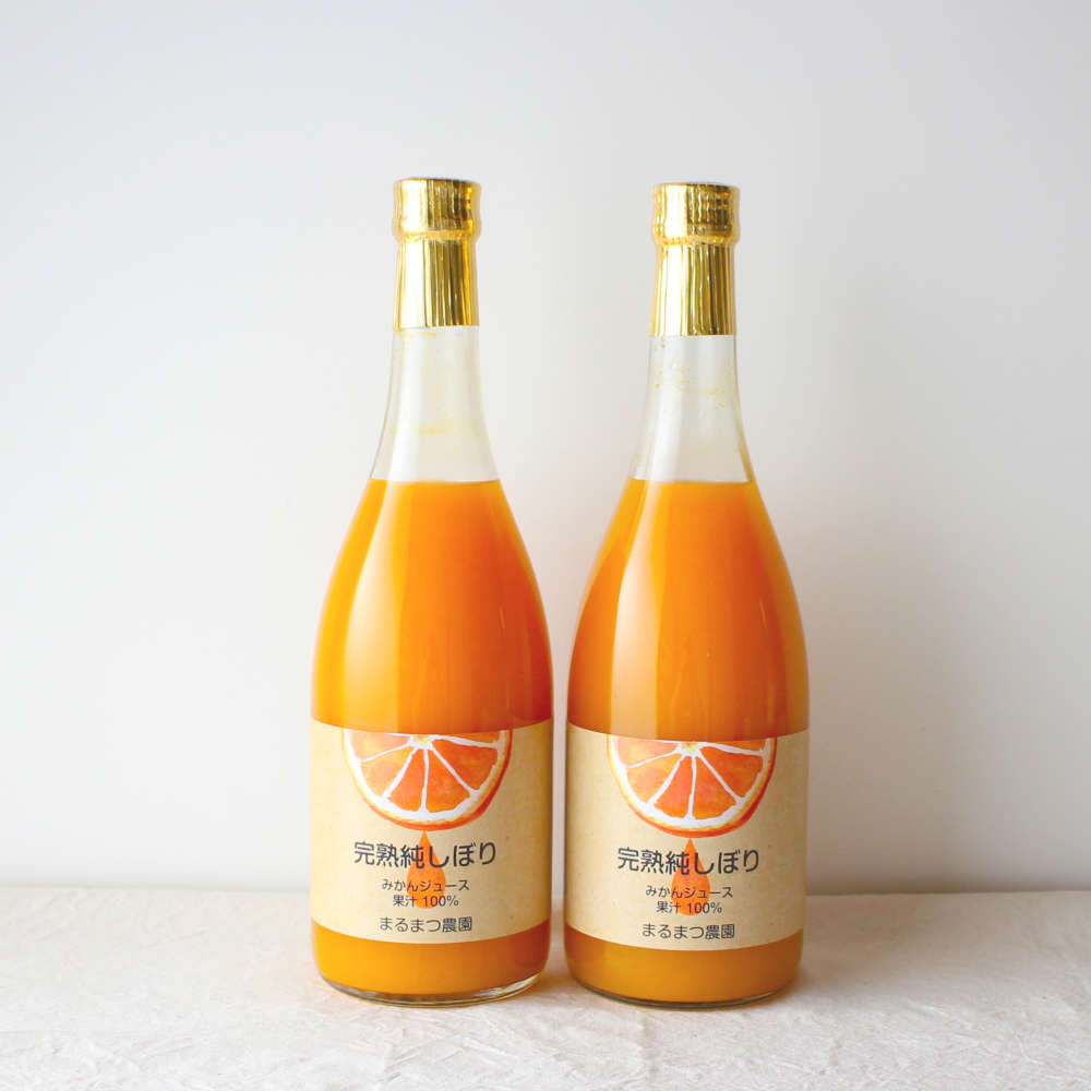 ジュースの糖度は12%以上。それはまるでみかんをそのまま食べているような甘さです。12月の一番美味しい時期を見極めて収穫し、旬の時期に搾ってジュースにしました。まるまつ農園では、甘さ、酸味など、みかんの品質にとことんこだわった栽培を心がけています。その味をより多くの方に一年中味わっていただきたいという思いでこのジュースを作りました。