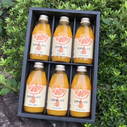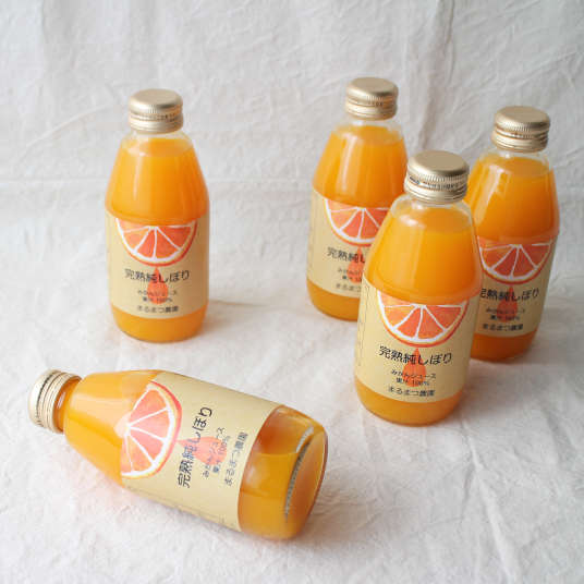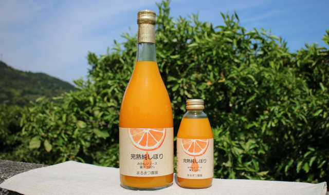 ジュースの糖度は12%以上。それはまるでみかんをそのまま食べているような甘さです。12月の一番美味しい時期を見極めて収穫し、旬の時期に搾ってジュースにしました。まるまつ農園では、甘さ、酸味など、みかんの品質にとことんこだわった栽培を心がけています。その味をより多くの方に一年中味わっていただきたいという思いでこのジュースを作りました。
