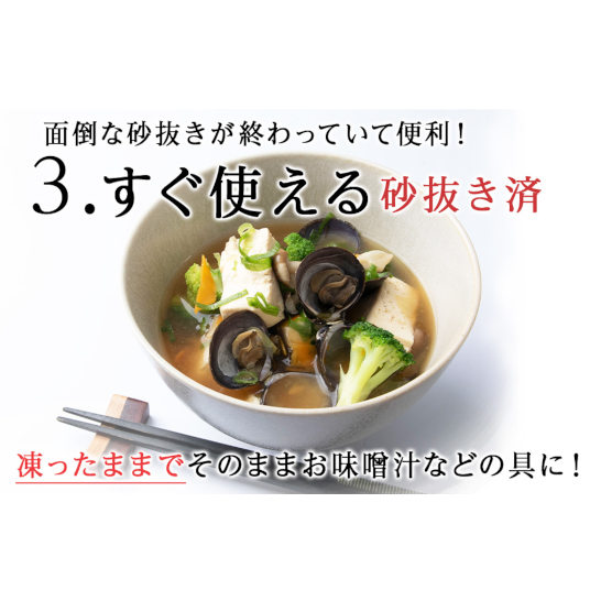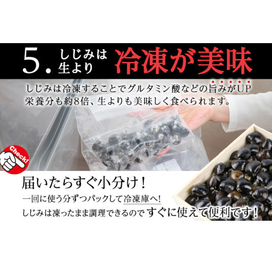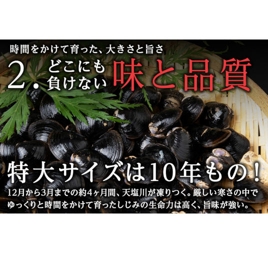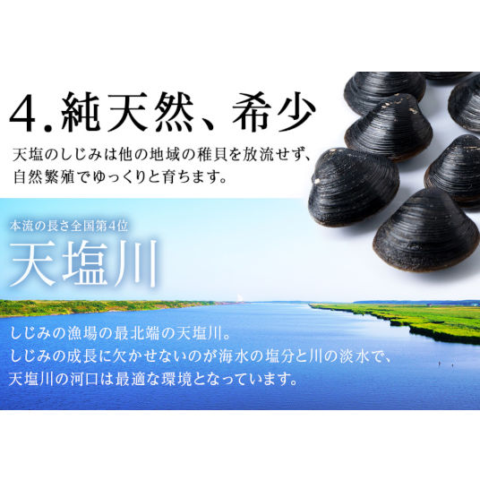 しみじみと味わう おふくろの味 天塩のしじみ たんぱく質・鉄分・カリウム・ビタミンB2、等の栄養素や血中コレステロールを引き下げる含硫アミノ酸を多く含み健康食品としても最高です。 お吸い物、おみそ汁等いろいろな料理にお使いください。