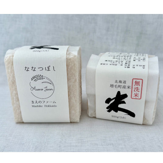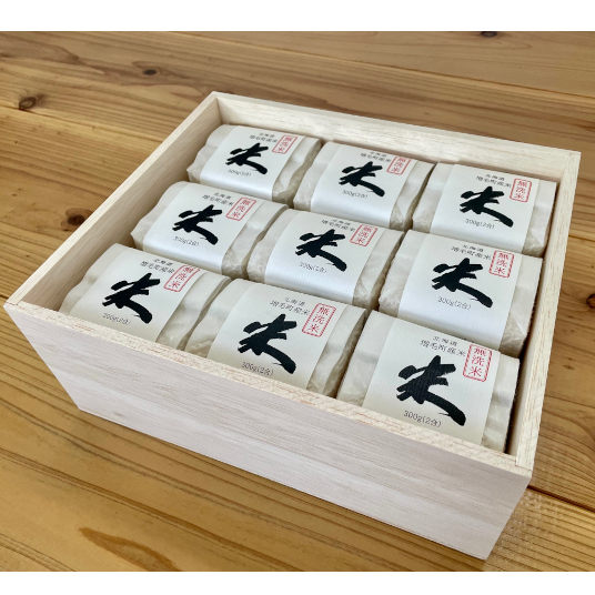 北海道増毛(ましけ)町産『ななつぼし』無洗米を真空パックしています。木箱は専用のオリジナル品です。ななつぼしは北海道で最も食べられている人気の品種でツヤ・粘り・甘みのバランスが良く、冷めても美味しさが長持ちするのでお弁当やおにぎり、お寿司に最適です。より新鮮なお米を届けるため、配送の直前に精米して真空パックしています。