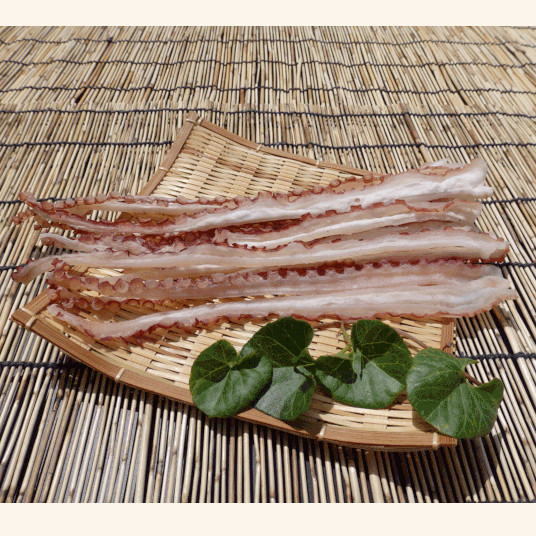 当社1番人気の商品です。別名「そぎだこ」とも呼ばれています。蛸の足を縦長にスライスした商品でほどよい歯ごたえで噛めば噛むほど蛸の旨みがお口の中に広がります。少し硬いかなと感じた時はじっくりとお口の中で噛んで下さい。だんだん柔らかくなり、蛸の旨みもどんどんお口の中に広がります。おつまみやおやつにぴったりです。お子様からご年配の方まで幅広い世代に人気の商品です。蛸専門店だからこその味をお楽しみください。