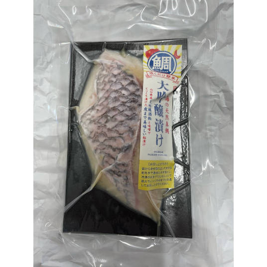 山口県産の肉厚天然真鯛を大吟醸酒から取れた酒粕に漬込んだ贅沢な逸品(山口県推奨品)。