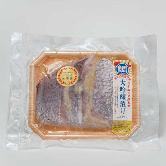 山口県産の肉厚天然真鯛を大吟醸酒から取れた酒粕に漬込んだ贅沢な逸品(山口県推奨品)。