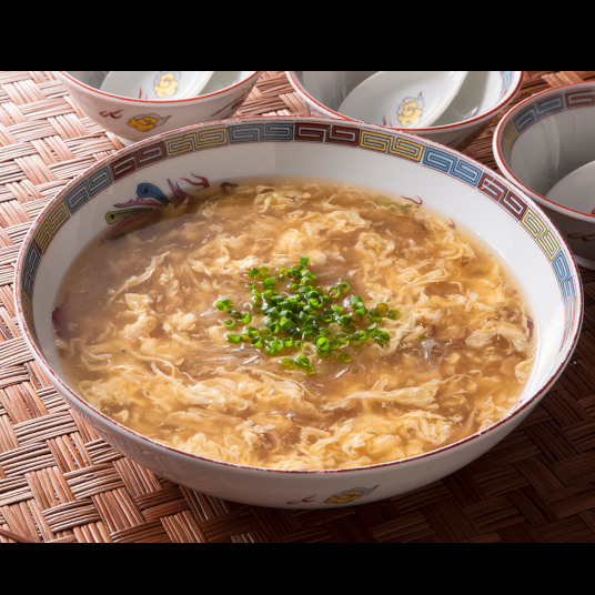 【素材】ガラスープ(豚鶏ガラスープ、ぶどう糖、その他)(国内製造)、ふかひれ、たけのこ、醤油、発酵調味液、食塩、ごま油、カニペースト、シーフードエキス、生姜汁、砂糖、オイスターエキス、香辛料/増粘剤(加工デンプン、キサンタンガム)、(一部に豚肉・鶏肉・牛肉・大豆・小麦・ごま・かにを含む)