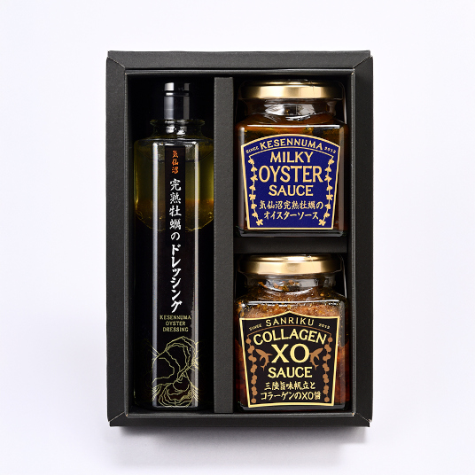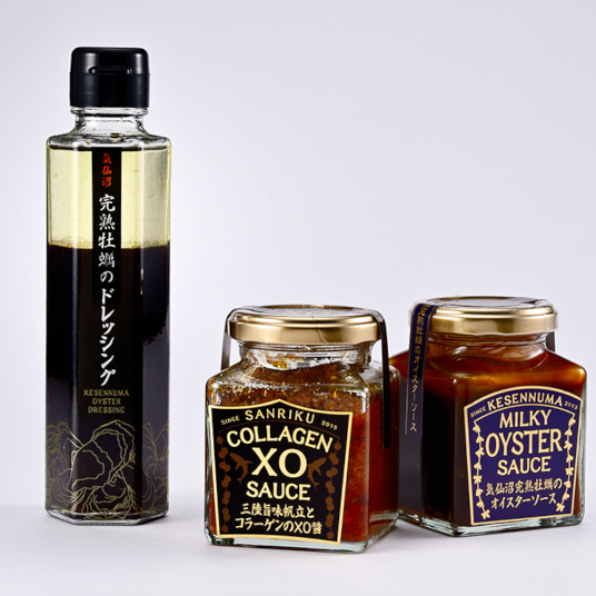 【内容量】オイスターソース160g、牡蠣のドレッシング150ml、三陸旨味帆立とコラーゲンXO醤145g