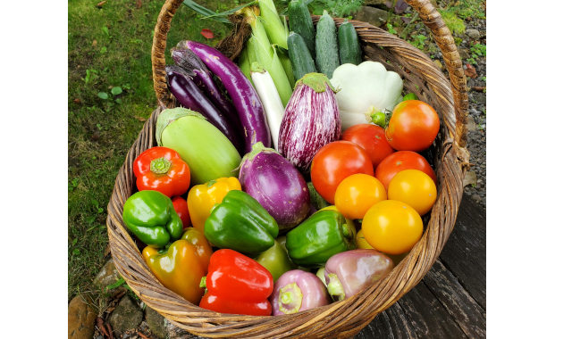 玉ねぎ・ジャガイモ(メークイン・キタアカリ・ノーザンルビー・シャドークイン・他)・ズッキーニ(白長・イエロー・ストライプ・UFO型・他)・スイスチャード・空芯菜・・大葉・など葉菜類、落花生・さつまいも(パープルスイートロード・ベニアズマ・他)・にんじん、プチトマト、中玉・大玉トマト(カラー、形、数種類)・コールラビ・茄子(イタリア茄子各種・白丸茄子・水茄子・他)・ピーマン(白・黒・他)・パプリカ・モロッコインゲン・莢インゲン・ビーツ・バジルなどハーブ、にんにく・かぼちゃ・トウモロコシ・きゅうり・…他
