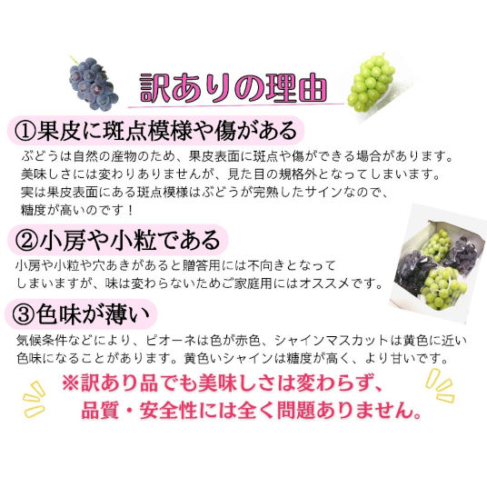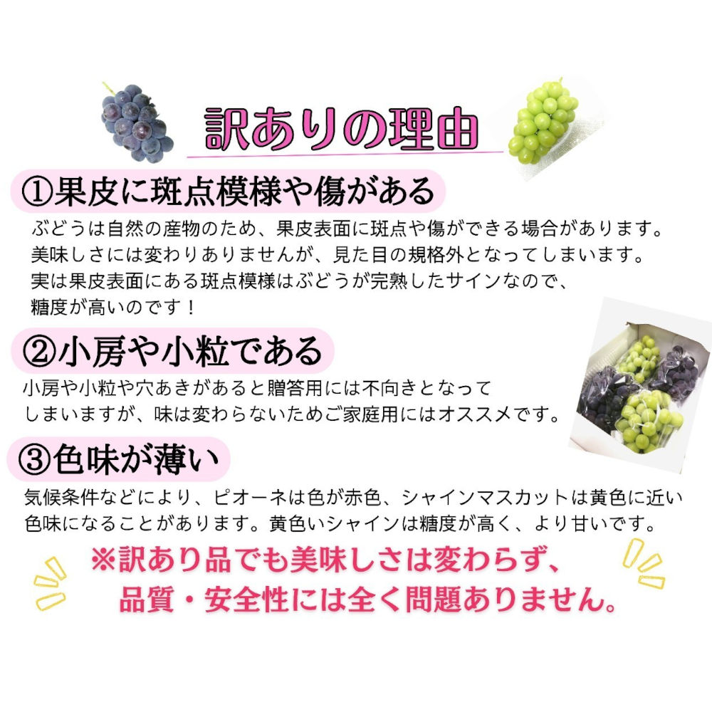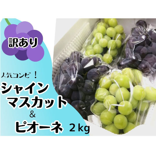 訳あり特価! シャインマスカットとピオーネの人気ぶどう詰め合わせ 2kg(3~5房)