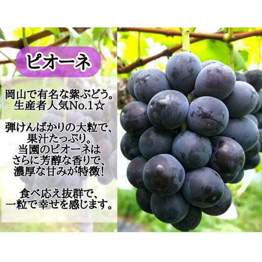 ピオーネとは… 岡山県で抜群の知名度を誇る、老若男女問わず誰からも愛される紫ぶどう。