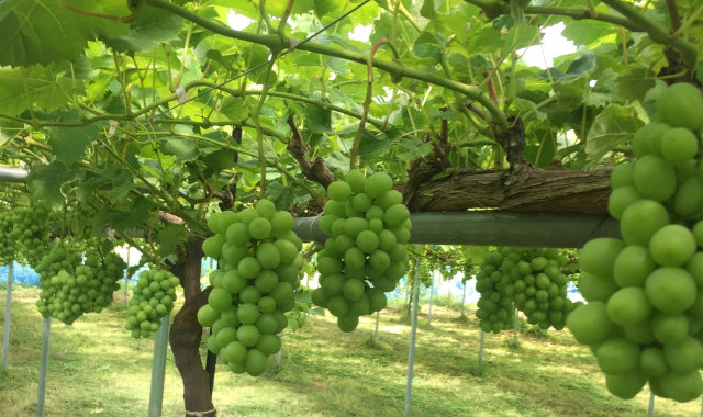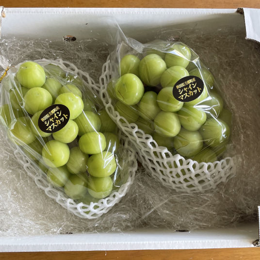果粒が大きく、皮が薄く、食べると噛み切りやすいのが特長です。甘味が強く、酸味は少なめ、渋味は無いに等しいか、あっても極く僅かに感じられる程度です。香りはいわゆるマスカットといわれる匂い、果汁は非常に多いです。