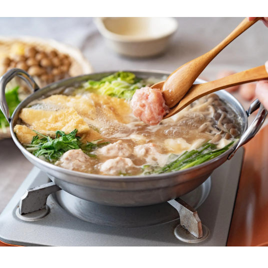 鶏の旨味たっぷりのつみれは、軟骨のコリコリとした食感が楽しく、生姜が効いたさっぱりとした味わいが特徴です。特製鶏ダシ醤油味スープと相性抜群のラーメン2玉付きで、家族や友人との団らんに最適な鍋セットです。