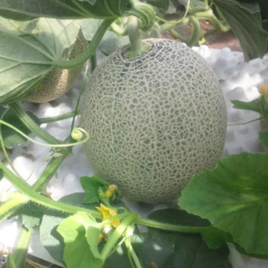 ジューシーながら程よい硬さがあり、果肉を食べている感じを味わえるのがタカミメロン。ユウカメロンの方が人気はありますが、園主の好きなメロンは実はこちらです。緑皮のネットメロン。ネットはマスクメロン等とは違い、細く細かいネットが入ります果汁が多いのが特徴で、口の中でフルーティーな旨味が溢れ出し、しつこく無い甘さで飽きの来ない品種なので家族で取合いになるって評判のメロン。日持ちもするメロンで(身が硬めの為追熟期が7日~は必要)糖度も16~17.5度くらいで安定しています。