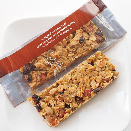 【グラノーラバー】有機オーツ、有機メープルシロップ、なたね油(埼玉県熊谷市産菜種使用)、小麦粉、クルミ、アーモンド、レーズン、かぼちゃの種、クランベリー、グリーンレーズン、オレンジジュース、塩