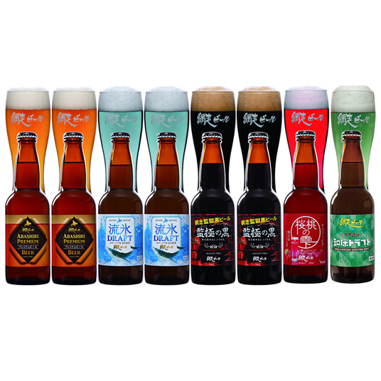 【内容量】流氷ドラフト、ABASHIRIプレミアムビール、監極の黒…330ml瓶×各2本