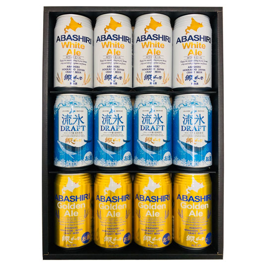 【内容量】ABASHIRI White Ale、流氷ドラフト、ABASHIRI Golden Ale…350mL缶×各4本