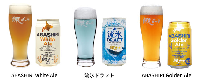 ABASHIRI White Ale…網走産小麦を使用した白濁タイプ。まろやかな飲み口と、オレンジピールやコリアンダーシードによる柑橘系の香りが特徴的。